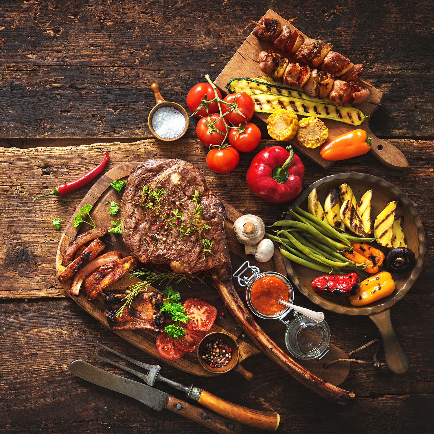 A true cookery performance, it judiciously combines tradition and healthfulness, offering the delightful flavours of a spit-roast barbecue.